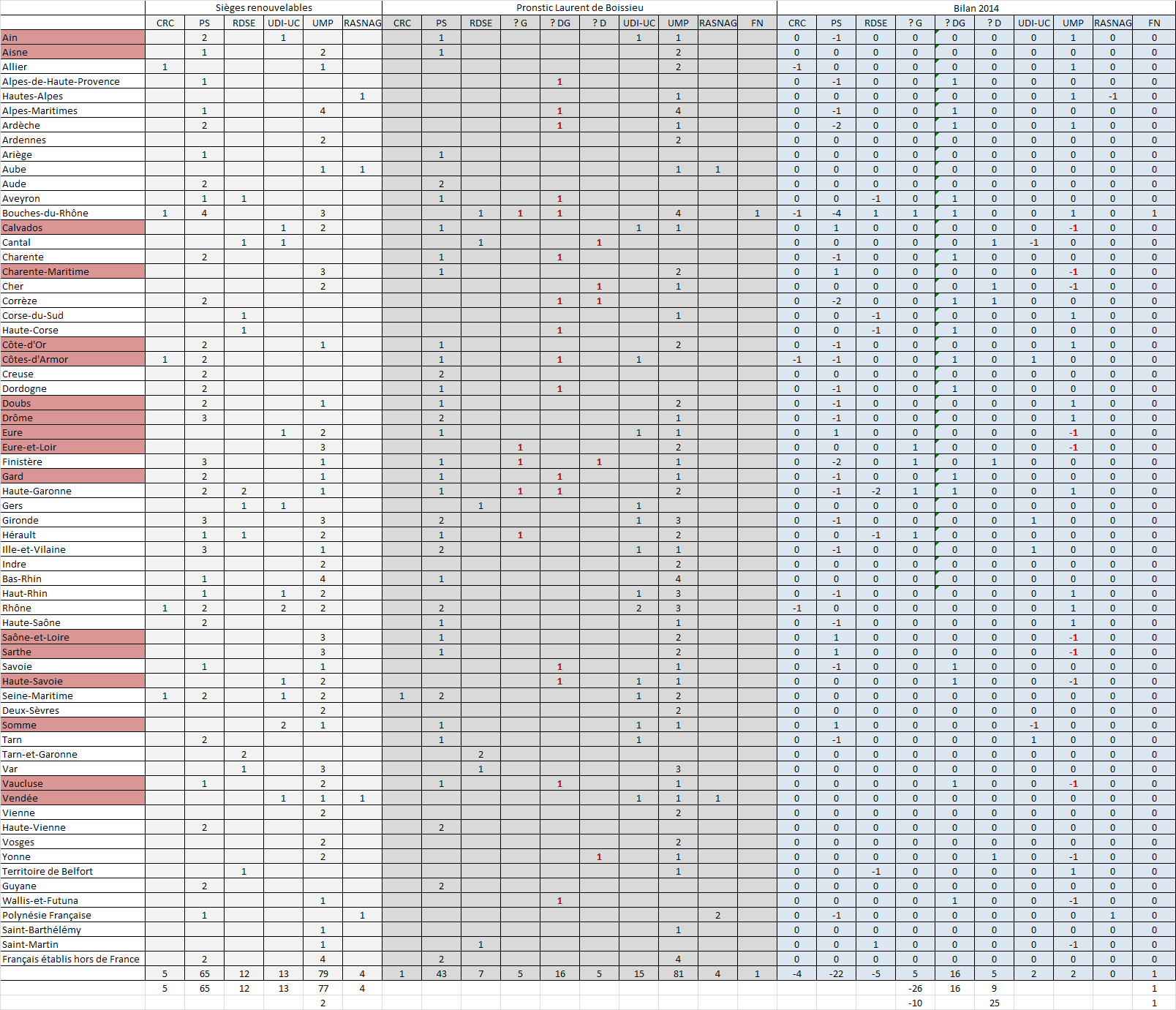 Voici selon moi les départements où la gauche devrait "mécaniquement" gagner un siège sur la droite: