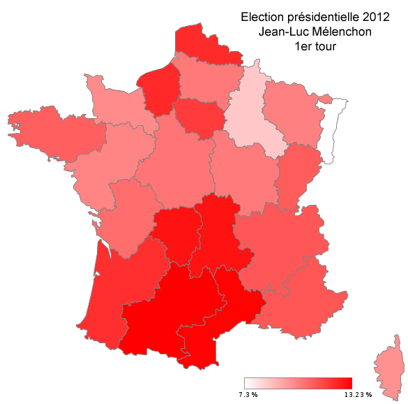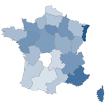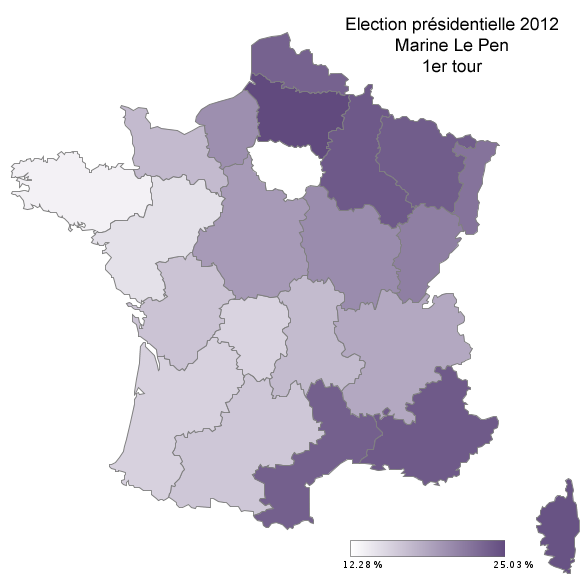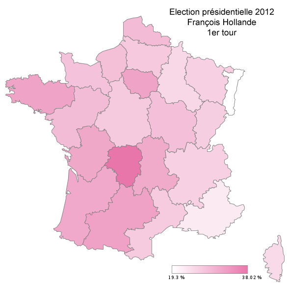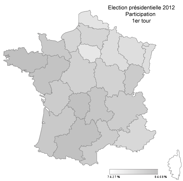 Cliquez sur l'une des régions, ci-dessous, pour accéder aux résultats de l'élection présidentielle de 2012. Les résultats de l'outre mer sont accessibles via l'onglet "Résultats par département".