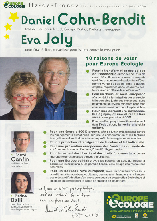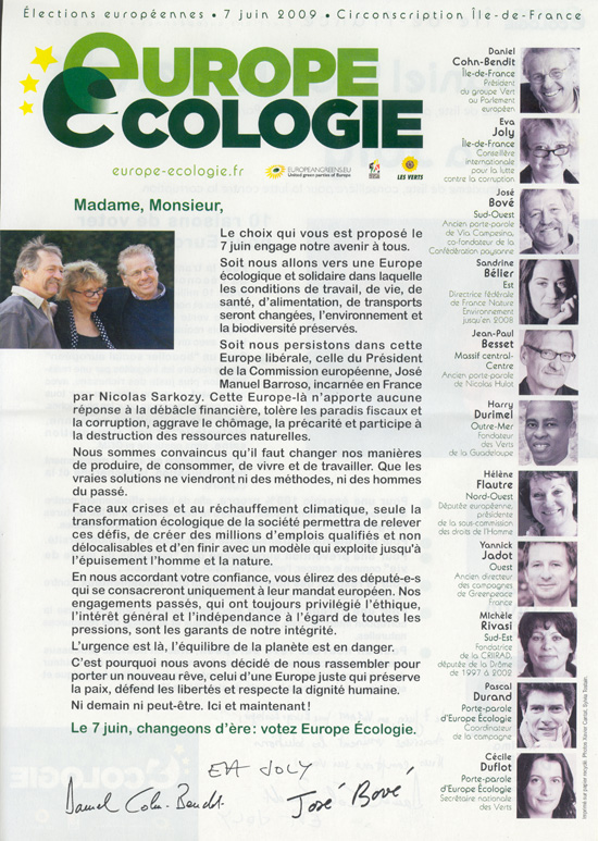 La profession de foi de la liste Europe écologie aux élections européennes de 2009 pour la région ÃŽle-de-France