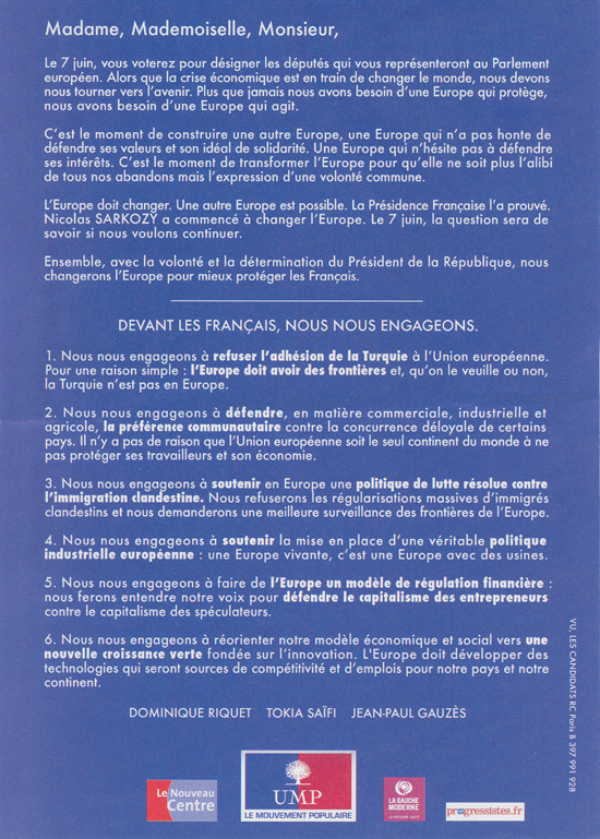 Professions de foi aux élections européennes de 2009