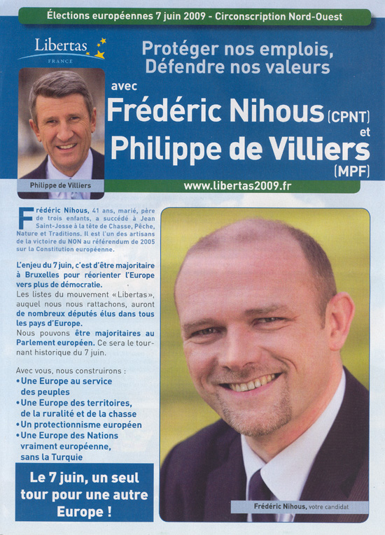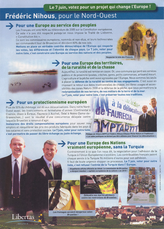 La profession de foi de la liste Libertas aux élections européennes de 2009 pour la région Nord-Ouest