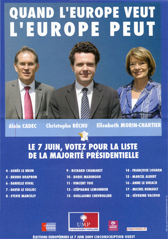 La profession de foi de la liste Majorité présidentielle aux élections européennes de 2009 pour la région Ouest