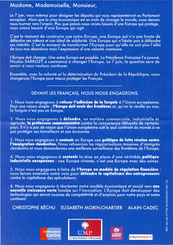 Voir toutes les autres professions de foi des élections européennes de 2009.