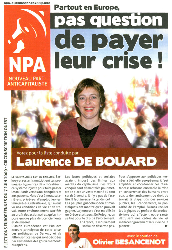 La profession de foi de la liste NPA aux élections européennes de 2009 pour la région Ouest
