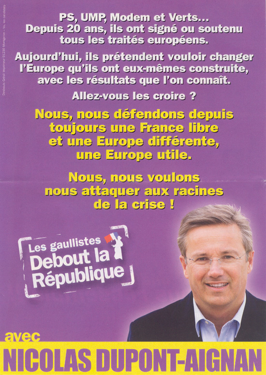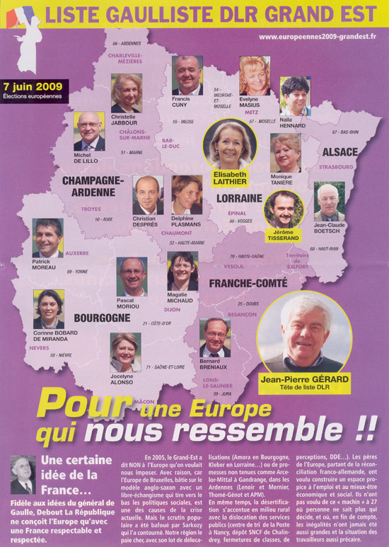 La profession de foi de la liste Debout la République aux élections européennes de 2009 pour la région Est