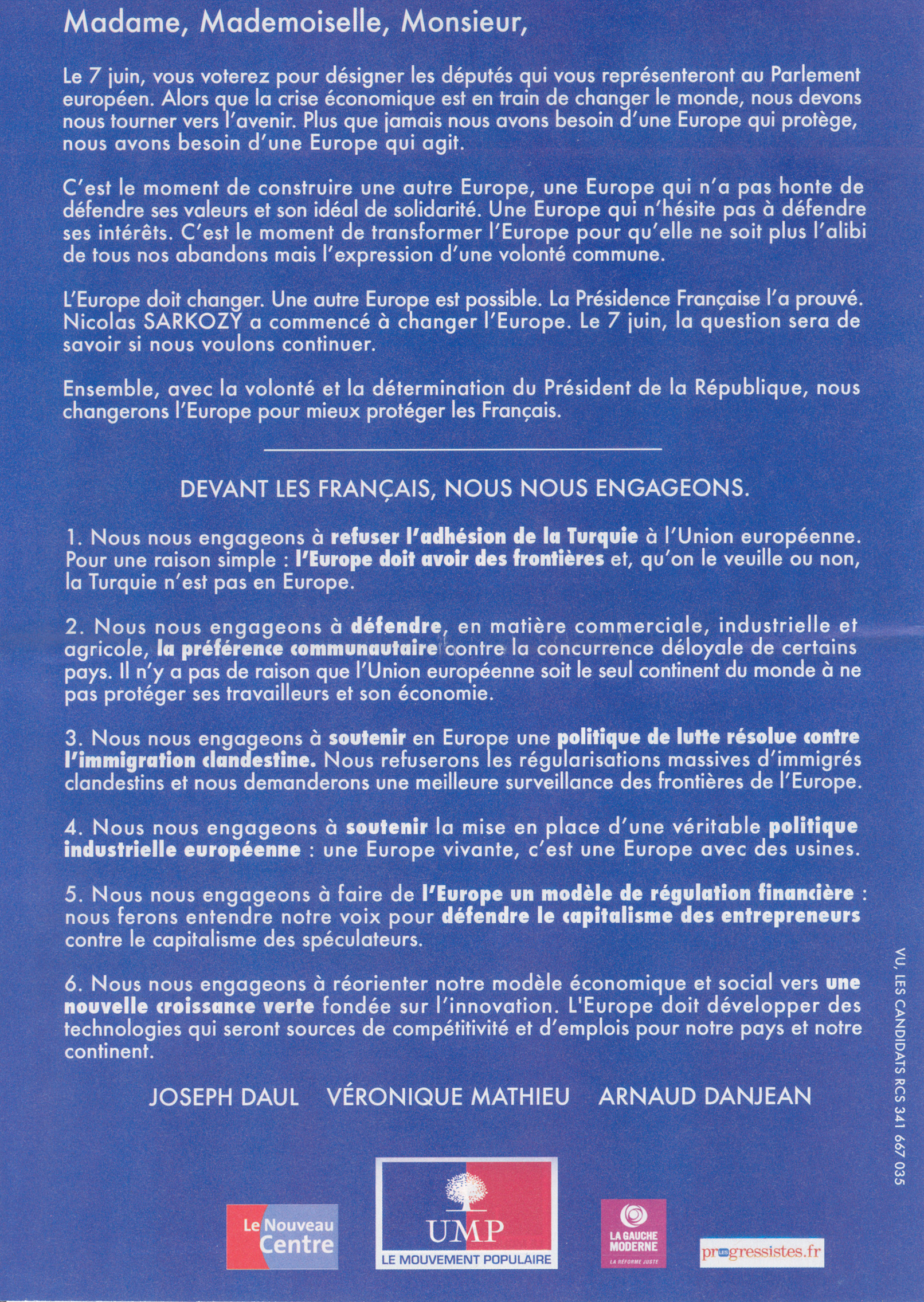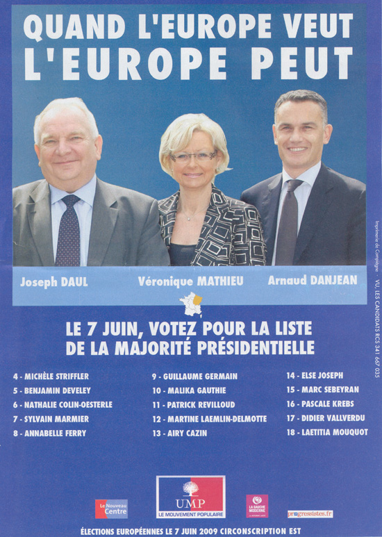 La profession de foi de la liste Majorité présidentielle aux élections européennes de 2009 pour la région Est