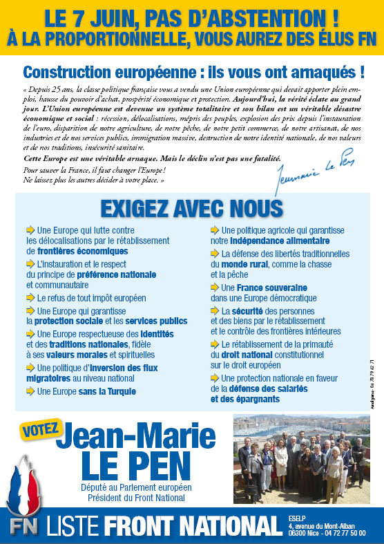 La profession de foi de la liste Front national aux élections européennes de 2009 pour la région Sud-Est