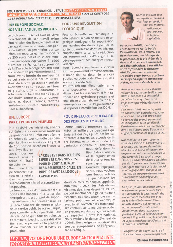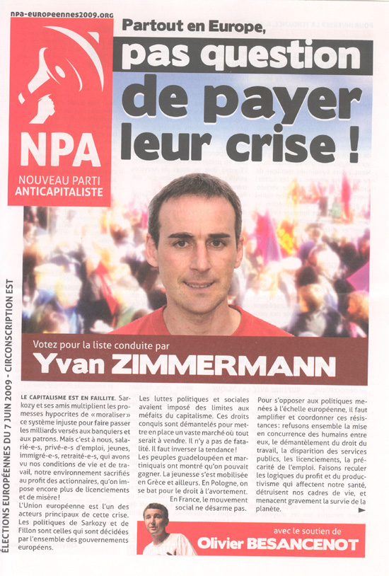 La profession de foi de la liste NPA aux élections européennes de 2009 pour la région Est