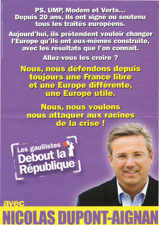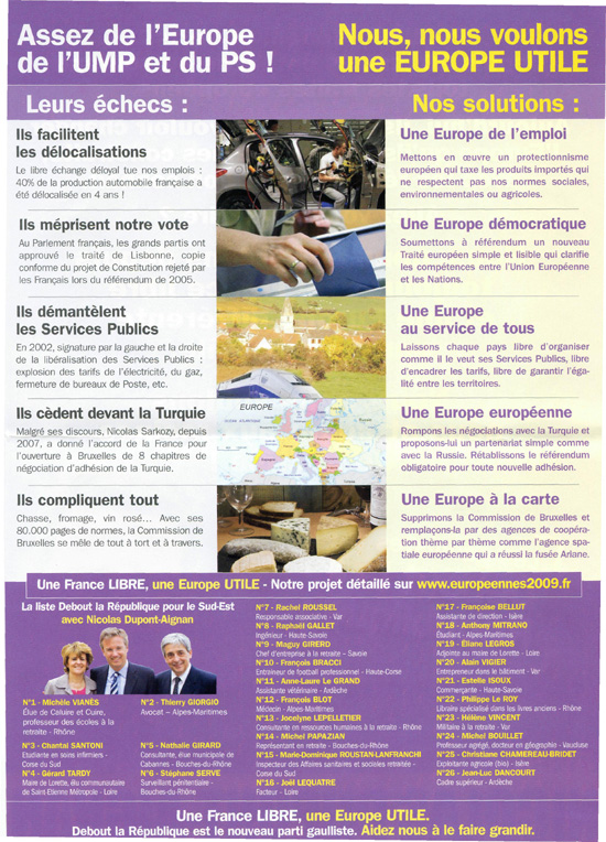 La profession de foi de la liste Debout la République aux élections européennes de 2009 pour la région Sud-Est