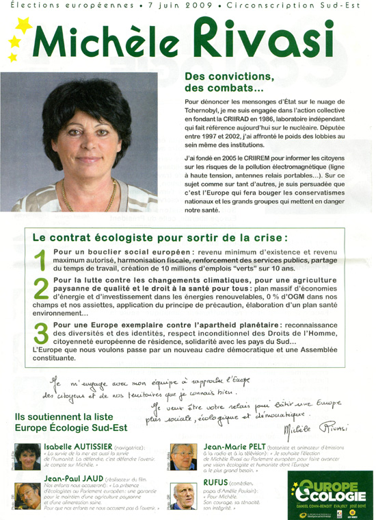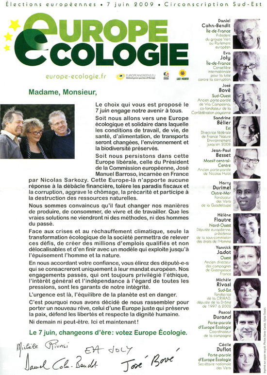 La profession de foi de la liste Europe écologie aux élections européennes de 2009 pour la région Sud-Est