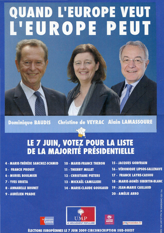 La profession de foi de la liste Majorité présidentielle aux élections européennes de 2009 pour la région Sud-Ouest