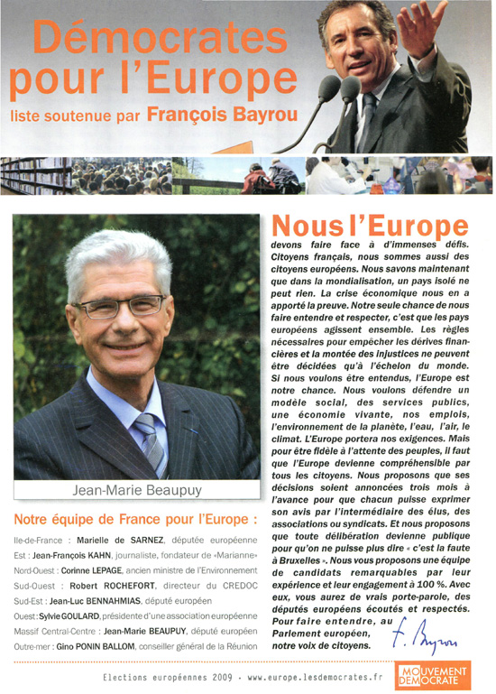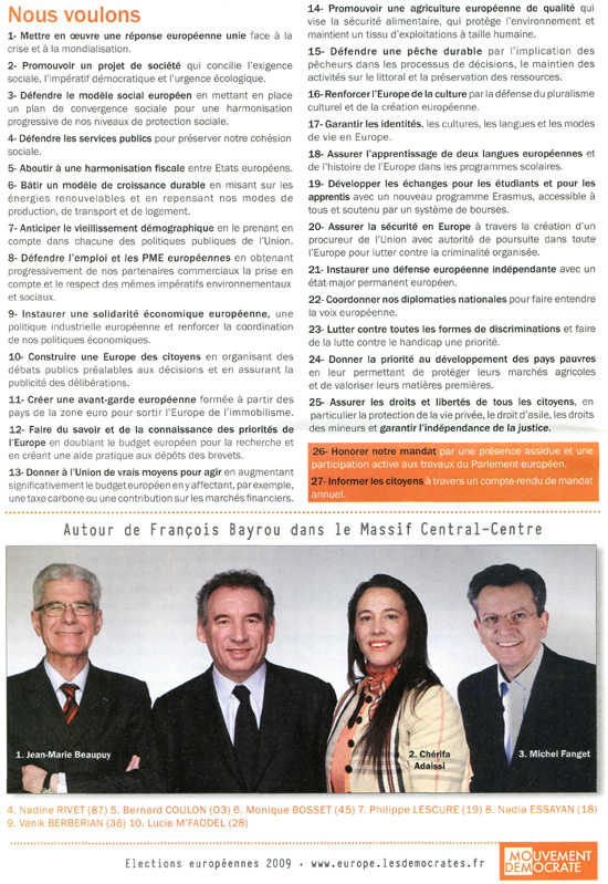 La profession de foi de la liste MoDem aux élections européennes de 2009 pour la région Centre