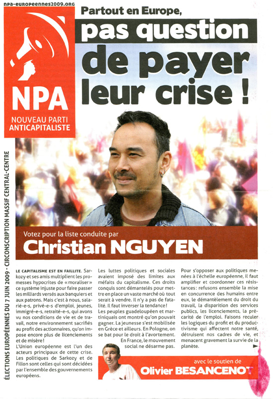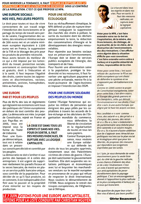 La profession de foi de la liste NPA aux élections européennes de 2009 pour la région Centre