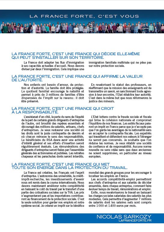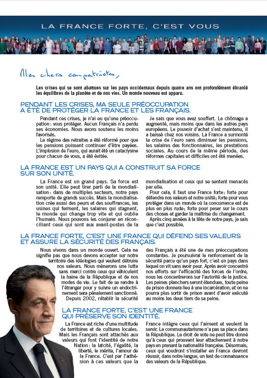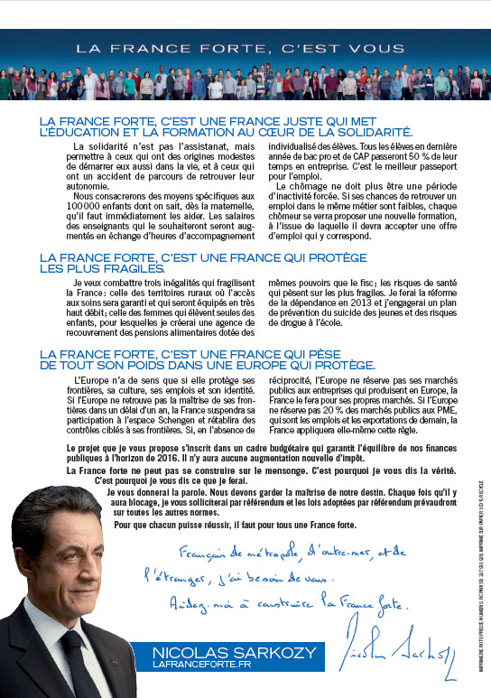 Profession de foi de Nicolas Sarkozy au 1er tour de l'élection présidentielle de 2012