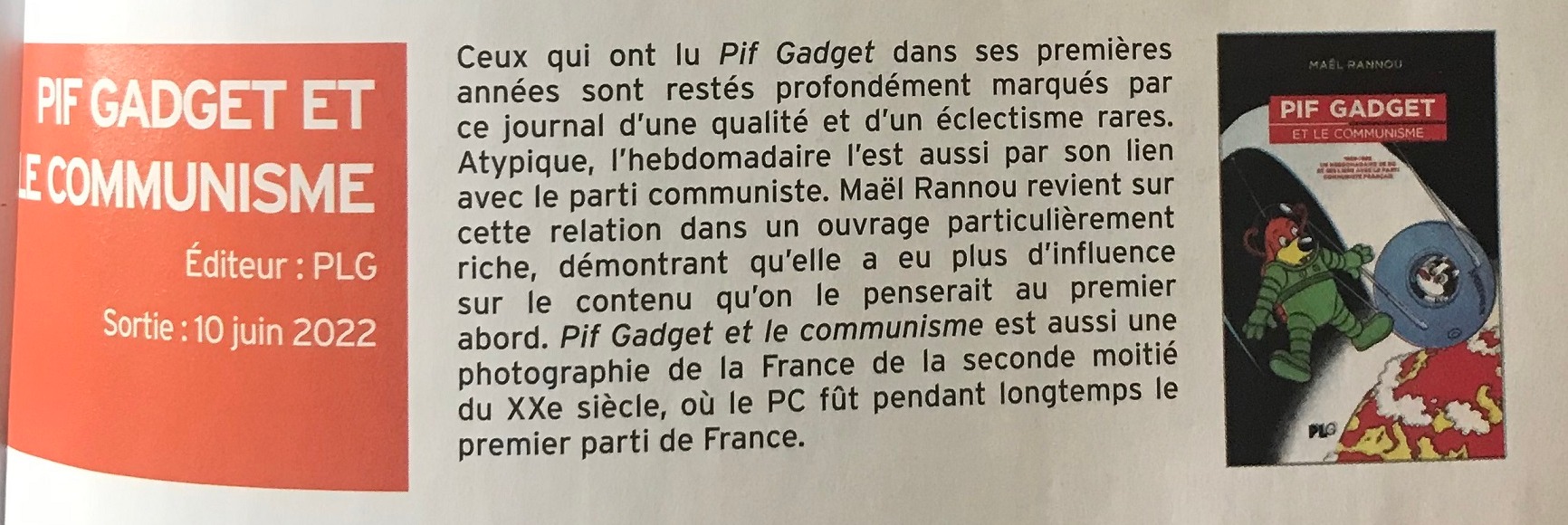 - "Ceci n’est pas un gadget : Pif Gadget et la surprise sous blister" - Bertrand TILLIER (PU en histoire contemporaine, université Paris 1 Panthéon Sorbonne)
