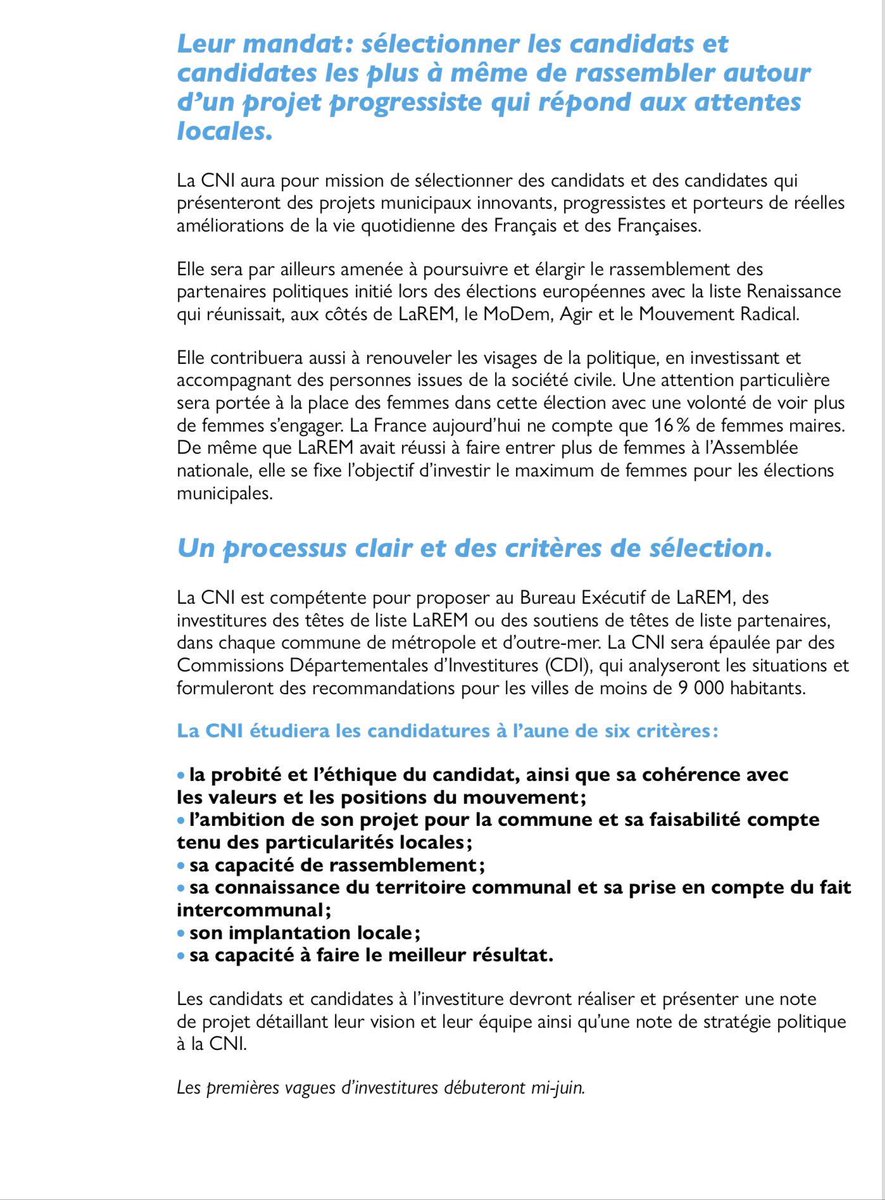 Nous devrions d'ailleurs bientôt connaître une première vague d'investitures mi-juin.